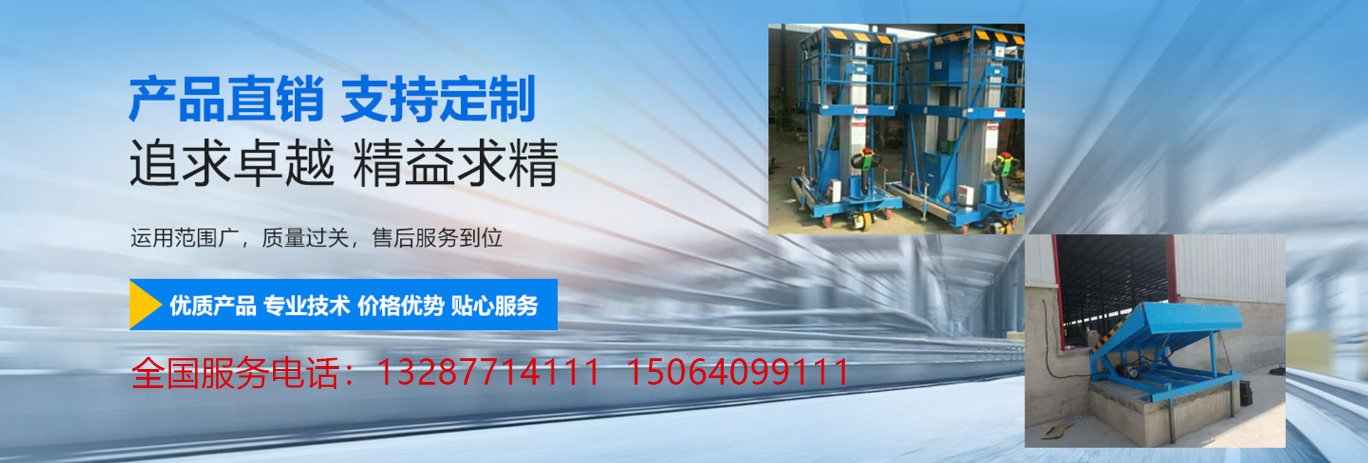 濟(jì)南領(lǐng)航升降機(jī)械有限公司是專(zhuān)業(yè)生產(chǎn)升降機(jī),升降平臺(tái),登車(chē)橋等產(chǎn)品的公司。公司產(chǎn)品共有八大系列六十多個(gè)品種,主導(dǎo)產(chǎn)品是剪叉式濟(jì)南升降平臺(tái)、 濟(jì)南升降貨梯、濟(jì)南升降機(jī)、鋁合金升降平臺(tái)及液壓固定式濟(jì)南登車(chē)橋等。公司產(chǎn)品符合國(guó)家行業(yè)標(biāo)準(zhǔn)。并且我們有多桅柱旋轉(zhuǎn)式鋁合金、 軌道智能式升降平臺(tái)得到同行業(yè)及專(zhuān)家的好評(píng)、質(zhì)量和服務(wù),在我們看來(lái)不再只是一個(gè)經(jīng)濟(jì)指標(biāo),更是一個(gè)人文指標(biāo),致力于突出產(chǎn)品質(zhì)量、價(jià)值及服務(wù)特色, 使我們同客戶(hù)之間建立的良好關(guān)系得以持久發(fā)展, “信譽(yù)”作為中國(guó)企業(yè)走向世界的準(zhǔn)入證,是市場(chǎng)經(jīng)濟(jì)的血管和命脈。一直以來(lái),“信譽(yù)”代表了我公司的市場(chǎng)名譽(yù), 得到了廣大客戶(hù)的認(rèn)可,優(yōu)質(zhì)的售后服務(wù)源于企業(yè),我公司始終以“品質(zhì)為本,服務(wù)至上”作為企業(yè)宗旨。