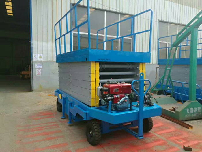 移動(dòng)剪叉升降機(jī)是用途廣泛的高空作業(yè)專(zhuān)用設(shè)備。它的剪叉機(jī)械結(jié)構(gòu),使升降臺(tái)起升有較高的穩(wěn)定性,寬大的作業(yè)平臺(tái)和較高的承載能力,使高空作業(yè)范圍更大、并適合多人同時(shí)作業(yè)。升降動(dòng)力分為220V或380V電源,柴油機(jī),或電瓶動(dòng)力源,特殊環(huán)境也可采用防爆泵站及防爆電器。升高4—22米,載重0.3—3噸。采用意大利和國(guó)產(chǎn)液壓泵站,臺(tái)面使用防滑絕緣扣板,具有防滑,絕緣、安全,請(qǐng)放心使用。它使高空作業(yè)效率更高,安全更保障。 |